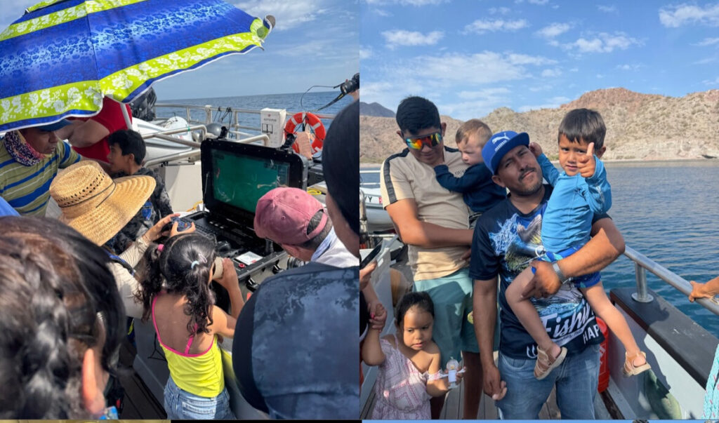 But what made the day truly special was what happened just offshore. Working with local fishers, youth, and conservation partners, our team used the Flyer’s Remotely Operated Vehicle (ROV) to explore nearby refugio sites—part of a promising effort to restore the Gulf’s marine ecosystems after decades of overfishing. The currents were strong, and the ROV had some hiccups, but thanks to skilled piloting and strong local collaboration, the team captured exciting footage at La Brecha, a site that showed clear signs of ecological recovery.