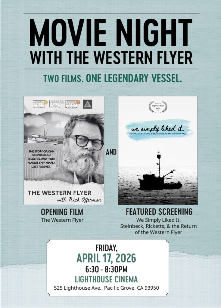 Featured Screening: We Simply Liked It: Steinbeck, Ricketts, & the Return of the Western Flyer (23 minutes), the award-winning short documentary filmed during the Flyer’s 85th Anniversary return voyage to Mexico’s Gulf of California