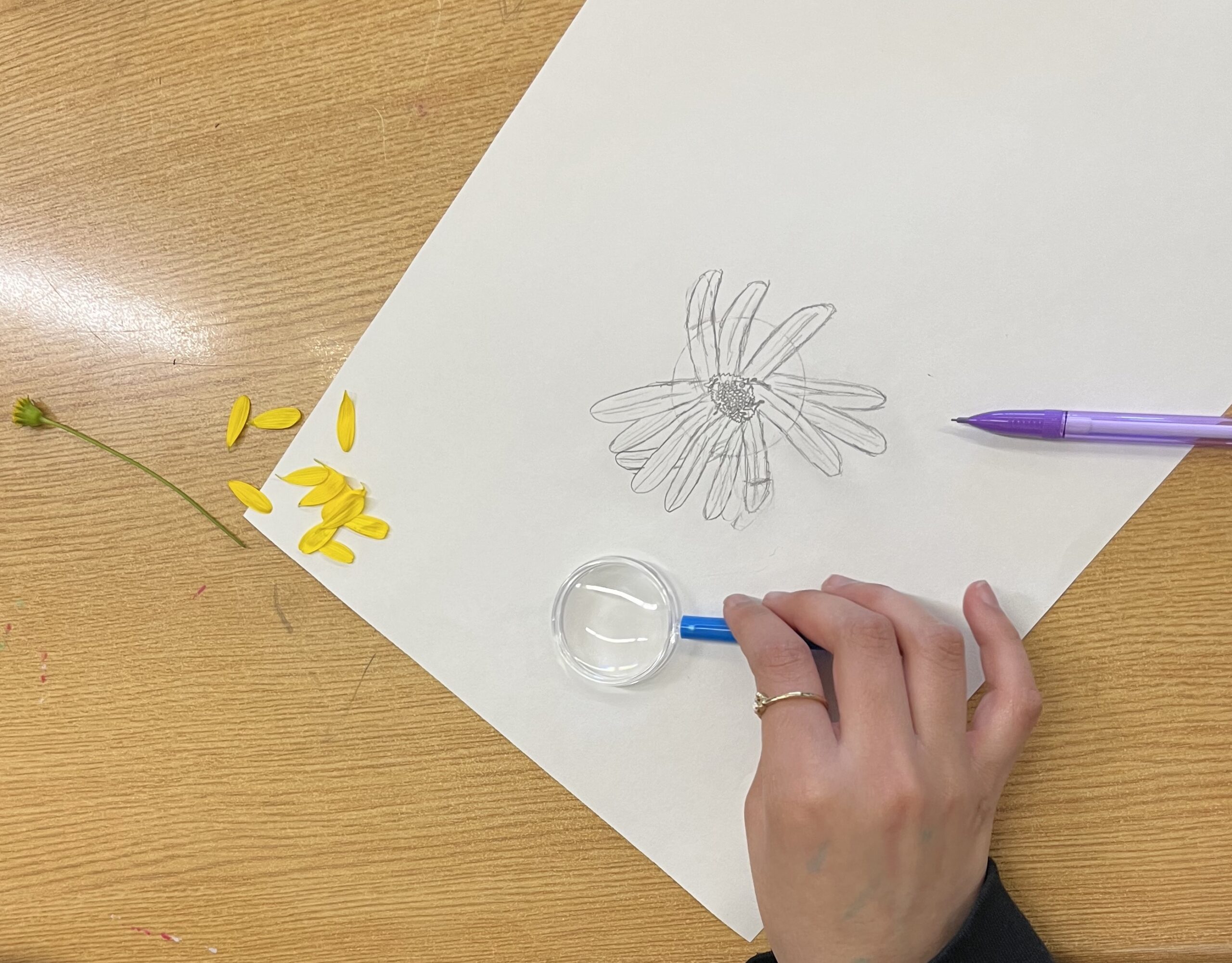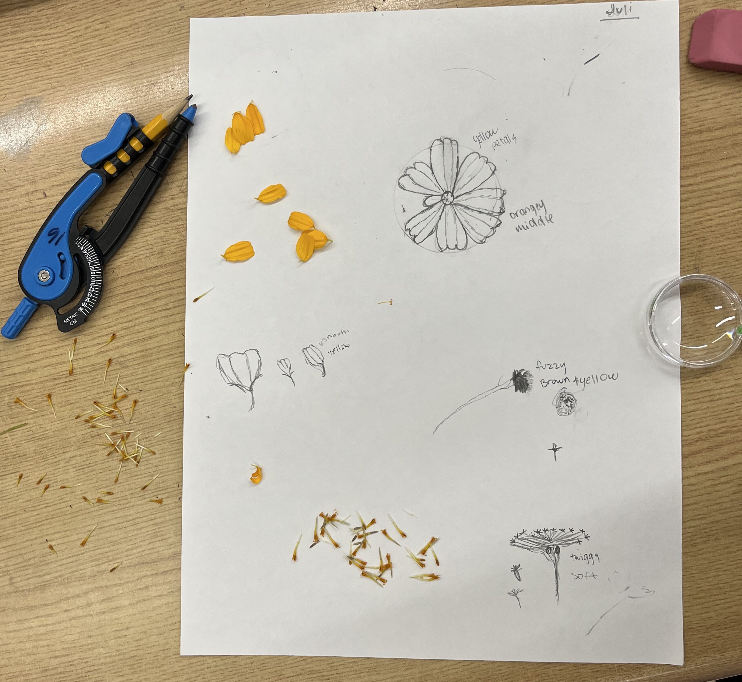 6th grade students from Ione Olson Elementary School, in Marina, participated in the Science Illustration Mentorship program. Students learned about botanical anatomy and illustration as they conducted flower dissections and created drawings with their visiting art mentor.