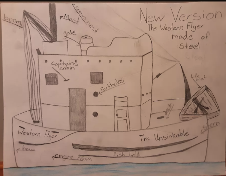 Sixth graders from North Monterey County Unified School District piloted the Western Flyer Foundation’s first curriculum unit. They learned about buoyancy, density, and the history of the Western Flyer. Throughout the unit, the students drew pictures of the Western Flyer at different stages of its life; when it was first built, after it sank in 2013, and during its restoration. Students also drew their visions for the future of the Western Flyer.