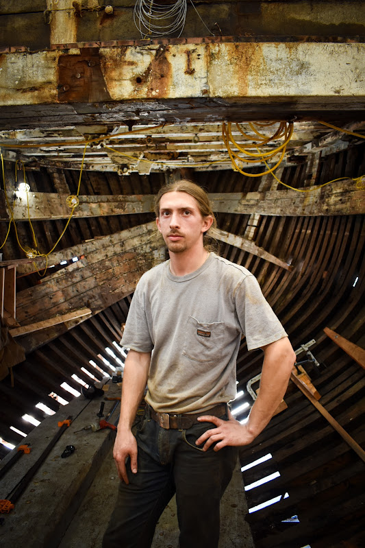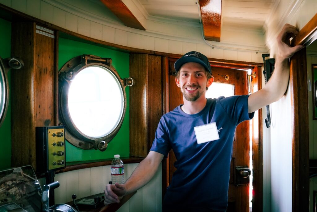 This month we said a fond goodbye and thank you to shipwright Lachlan Carlson, who has been applying his woodworking skills to the Western Flyer for the past five years. Lachlan will be returning to Washington, where he’ll be doing more custom carpentry and boat work. As his time with the Flyer came to an end, we sat down to hear his reflections about his time on the project.