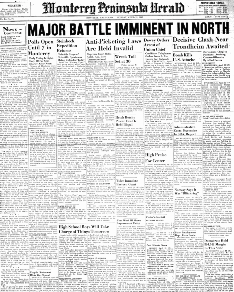 From the Monterey Peninsula Herald, April 22, 1940